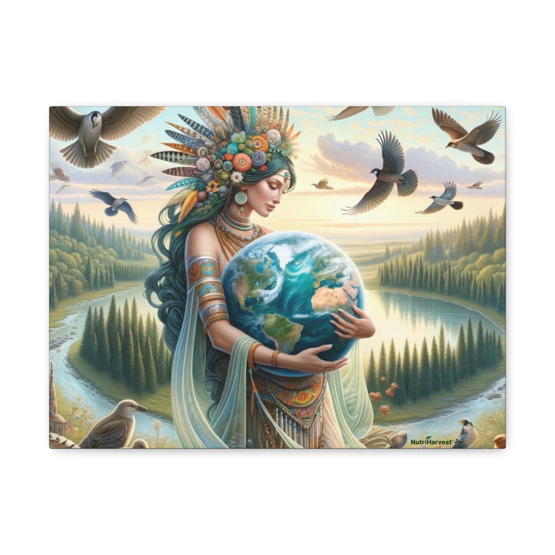 Mother Earth's Keeper Art, set against a stunning natural background with birds on Canvas Gallery Wraps